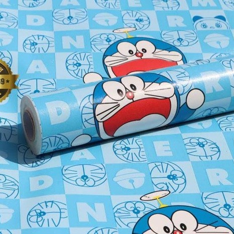 Dapatkan Jual Wallpaper Dinding Motif Doraemon Kotak Size 45cm X 10m