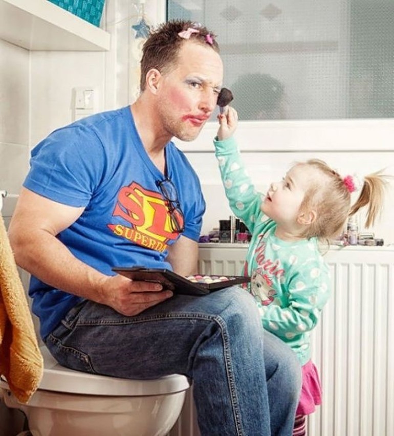 Gratis Unduh Foto So Sweet Momen Menggemaskan Saat Anak Perempuan Dandani Ayahnya