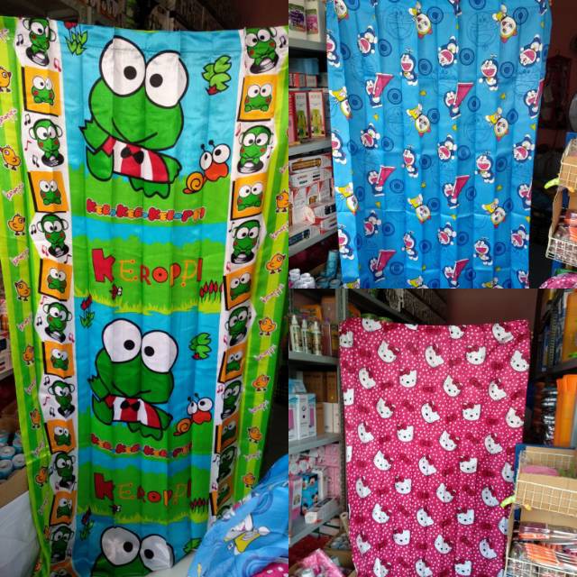Dapatkan Gorden Karakter Hello Kitty Doraemon Dan Keropi Bahan Satin
