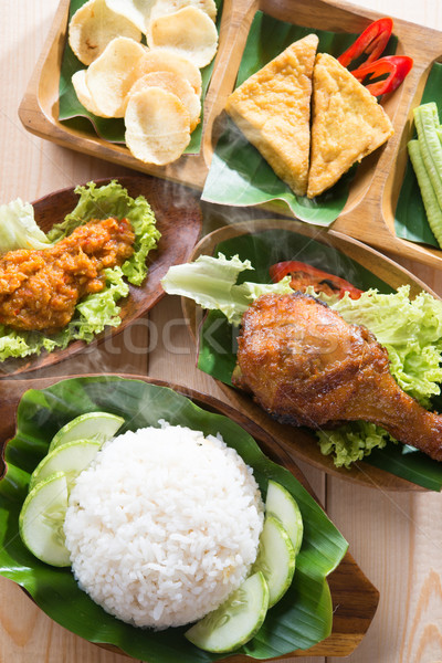 Gratis Unduh Directly Above Indonesian Food Nasi Ayam Penyet High Res Stock