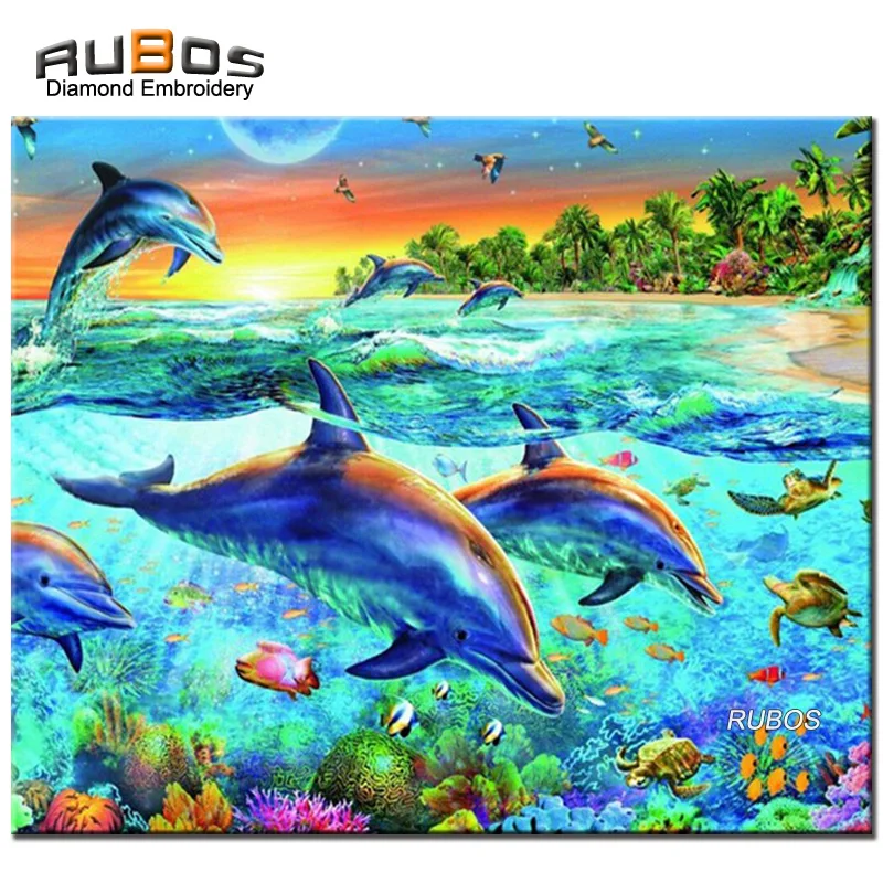 Gratis Download Diy 5d Berlian Mosaik Alam Laut Lumba Lumba Berlian Bordir