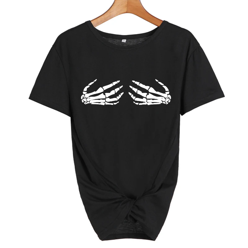 Dapatkan Skeleton Tangan Kaos Wanita Tumblr Punk Pakaian Lucu Harajuku T