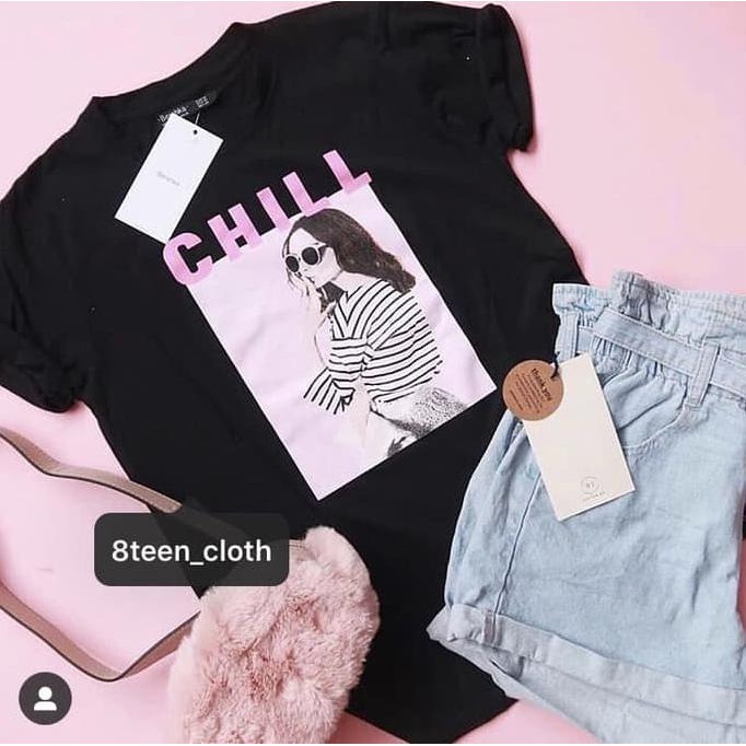 Gratis Download Kaos Wanita Chill Woman Warna Hitam Putih Kaos Wanita Kekinian