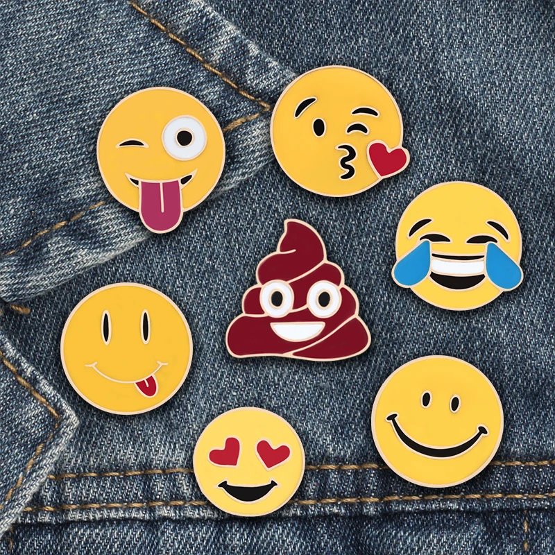 Dapatkan 7 Buah Set Lucu Kreatif Pin Ekspresi Ciuman Senyum Kotoran Logam