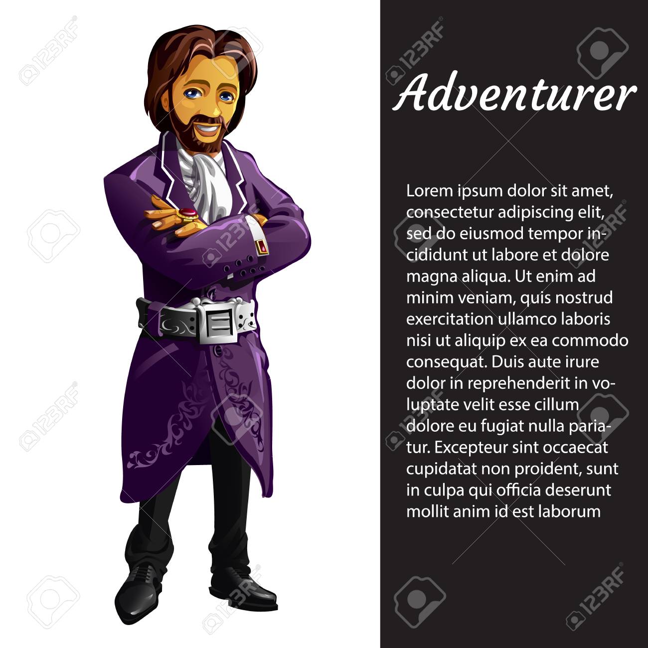Dapatkan A Card With A Picture Of Adventurer Isolated On White Background