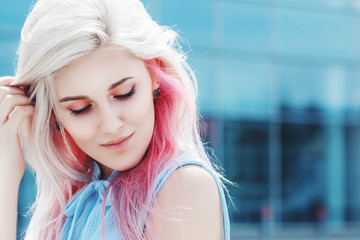 Download Gratis Fashion Woman With Blue Hair And Necklace Stock Image Image Of