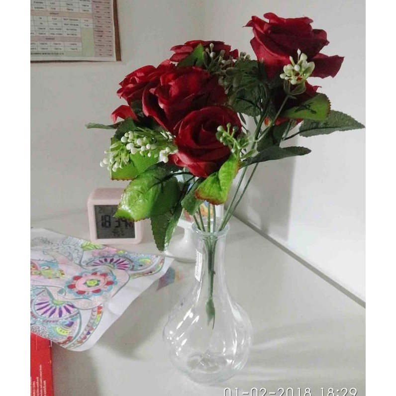 Dapatkan Diskon Bunga Mawar Dan Vas Bening Hiasan Meja Dekorasi Bunga
