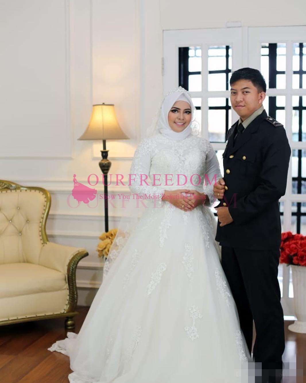 Unduh Gratis Discount Lengkap Modest Muslim Arabic High Neck Lace Wedding Dresses