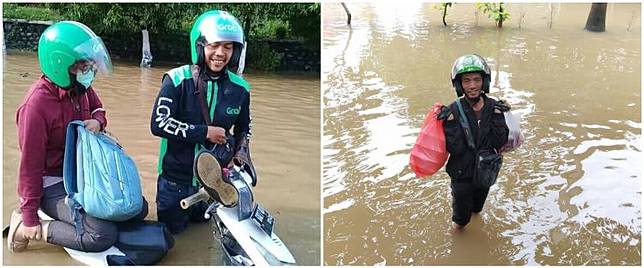 Dapatkan 7 Momen Driver Ojek Online Layani Pelanggan Saat Banjir Salut