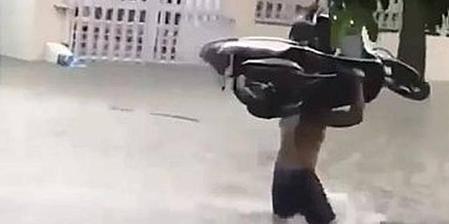 Gratis Download Kocak Pria Ini Panggul Motornya Saat Lewati Banjir
