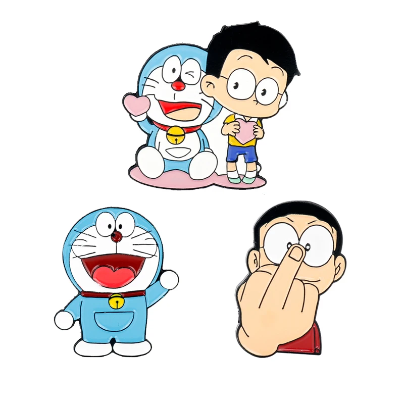 Gratis Unduh Anime Doraemon Cat Metal Enamel Pins And Nobita Nobi Brooches For