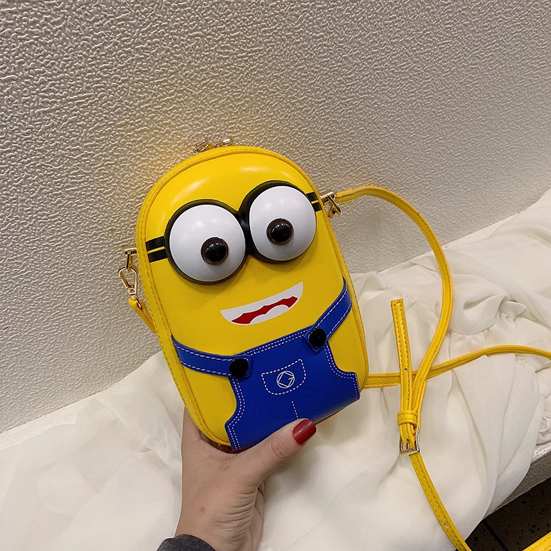 Gratis Unduh Tas Selempang Minions Lucu Motif Print Kartun Bahan Kulit Pu Warna
