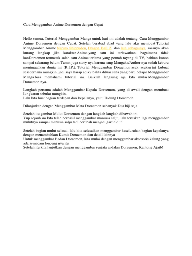 Dapatkan Doc Cara Menggambar Anime Doraemon Dengan Cepat Rano Suharjo